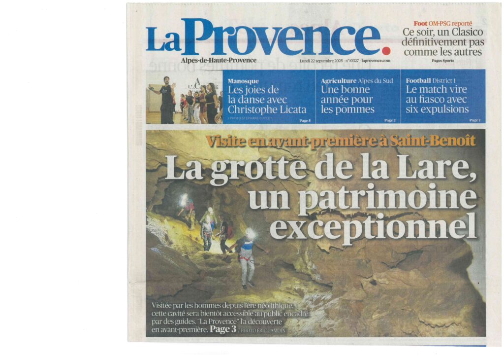 Article de presse paru dans la Provence : la visite de la grotte de la Lare