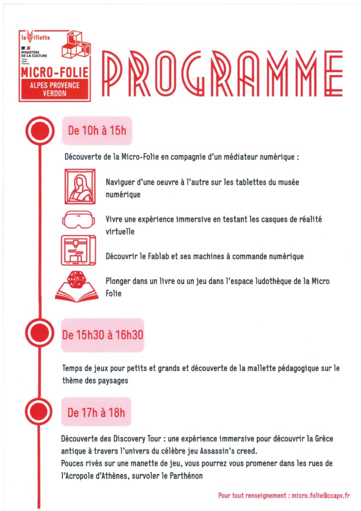 La Micro-Folie intercommunale reste à votre disposition pour tout renseignement : micro.folie@ccapv.fr / 06 86 07 84 70